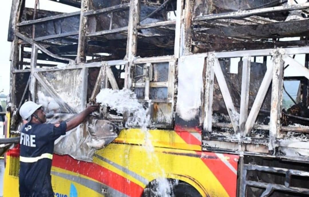 The fire proved to be too intense as the bus was engulfed by an inferno.
