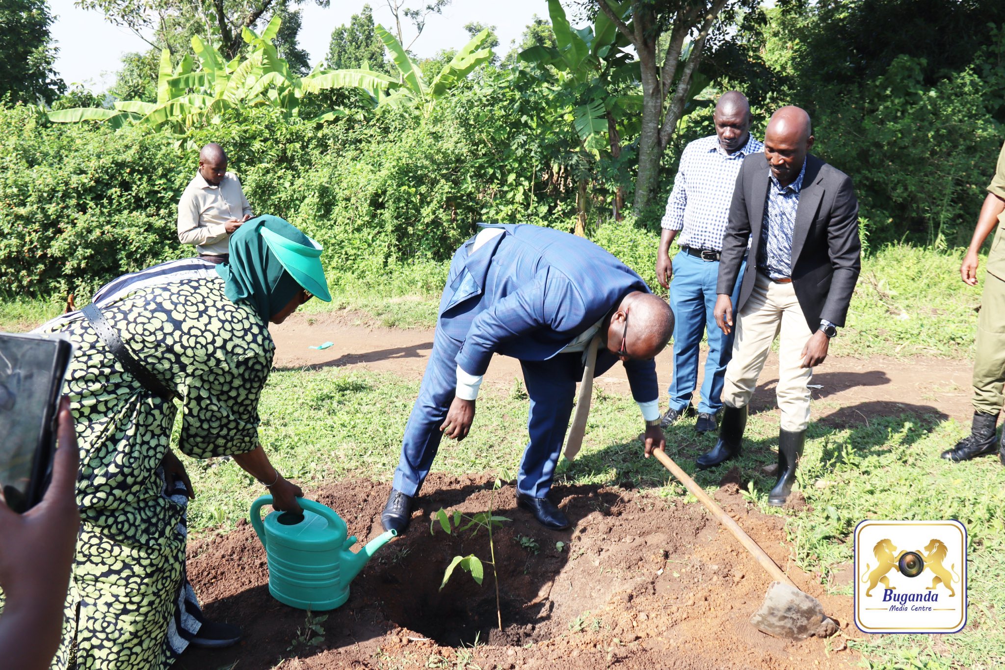 Owek. Robert Wagwa Nsibirwa, 2nd Deputy Prime Minister of Buganda Kingdom planting a tree during the official launch of the Buganda Environment Week.