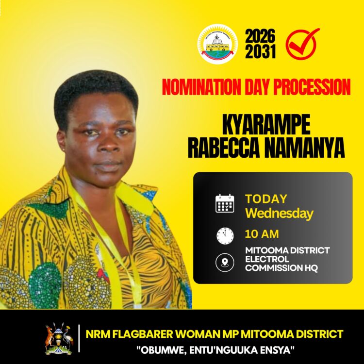 Rebecca Kyarampe Namanya, the NRM flag bearer for the Mitooma district woman MP seat is set for nominations this morning at the district Electoral Commission offices.