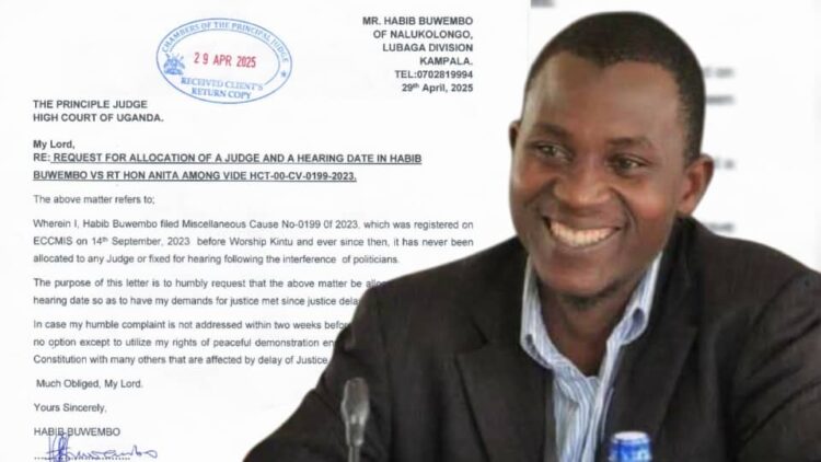 In a letter dated April 29, 2025, Buwembo expressed frustration over the prolonged delay in hearing the case (Miscellaneous Cause No. 0199 of 2023), which he filed on September 14, 2023.