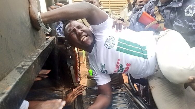 Police swiftly intervened when the group attempted to force entry into the Commission’s premises. The four were arrested, bundled into a waiting police patrol vehicle, and driven to an undisclosed location.