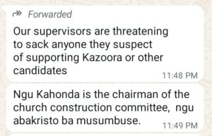 A Catholic believer who spoke to Parrots Media on condition of anonymity claimed that leaders at Nyakishojwa Parish are monitoring social media platforms such as Facebook and WhatsApp, allegedly threatening to dismiss anyone found mobilizing for rival candidates.