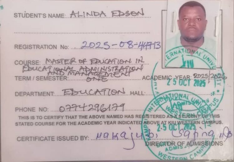 The deceased, identified as Edson Alinda, a resident of Kagote, Bushenyi District, was pursuing a Master of Education in Educational Administration and Management.