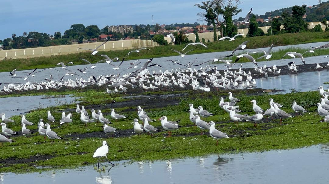 The grey headed gull among other birds at Lutembe bay, L.Victoria. Photo:Christopher,ACUS