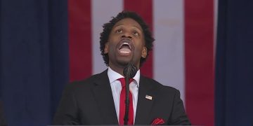 “Heavenly Father, in the name of Jesus, we are so grateful today that you will use our 47th president so we will sing with new meaning, ‘My country, ’tis of thee, sweet land of liberty, of thee I sing; Land where my fathers died. Land of the pilgrims’ pride. From every mountainside, let freedom ring.’ And because America is called to be a great nation, we believe that you will make this come true.
