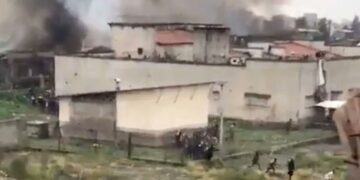 Footage from the jailbreak shows prisoners fleeing as thick smoke rises from the facility. Heavy gunfire can be heard in the background, adding to the atmosphere of fear and destruction.