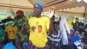 She has made posters displayed in every venue she addresses a campaign rally with a slogan “Team Peace Rugambwa -President Museveni 2026-2031.”