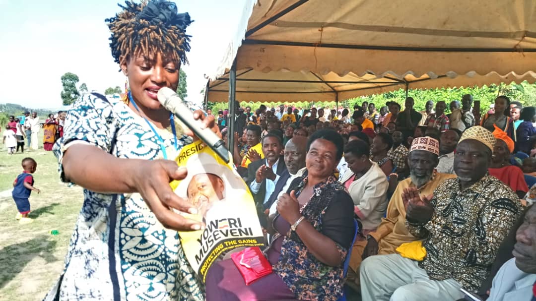 Hundreds gather to listen to PA Rugambwa as she campaigned for President Museveni in Western Uganda.