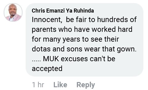 Former Ruhinda County Parliamentary contestant, Chris Gumisiriza, alias Chris Emanzi Ya Ruhinda, for instance in a reaction to the post reminded him on the eagerness of the parents and guardians to see their children wear these gowns.