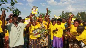 The residents who were donning yellow T-shirts were excited as Rugambwa addressed them saying Museveni Oyee pledging to vote for him come 2026 polls.